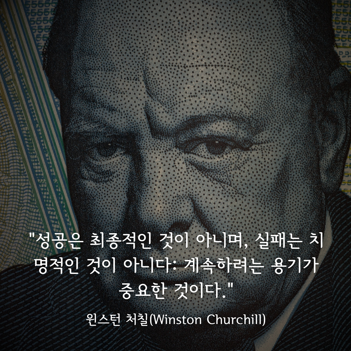 "성공은 최종적인 것이 아니며, 실패는 치명적인 것이 아니다: 계속하려는 용기가 중요한 것이다."
