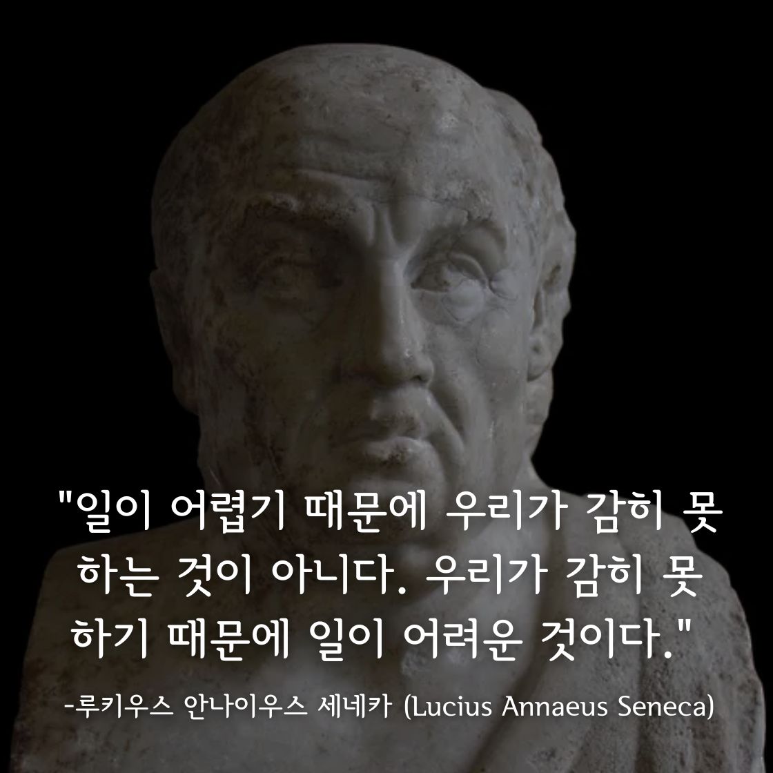 "일이 어렵기 때문에 우리가 감히 못하는 것이 아니다. 우리가 감히 못하기 때문에 일이 어려운 것이다."